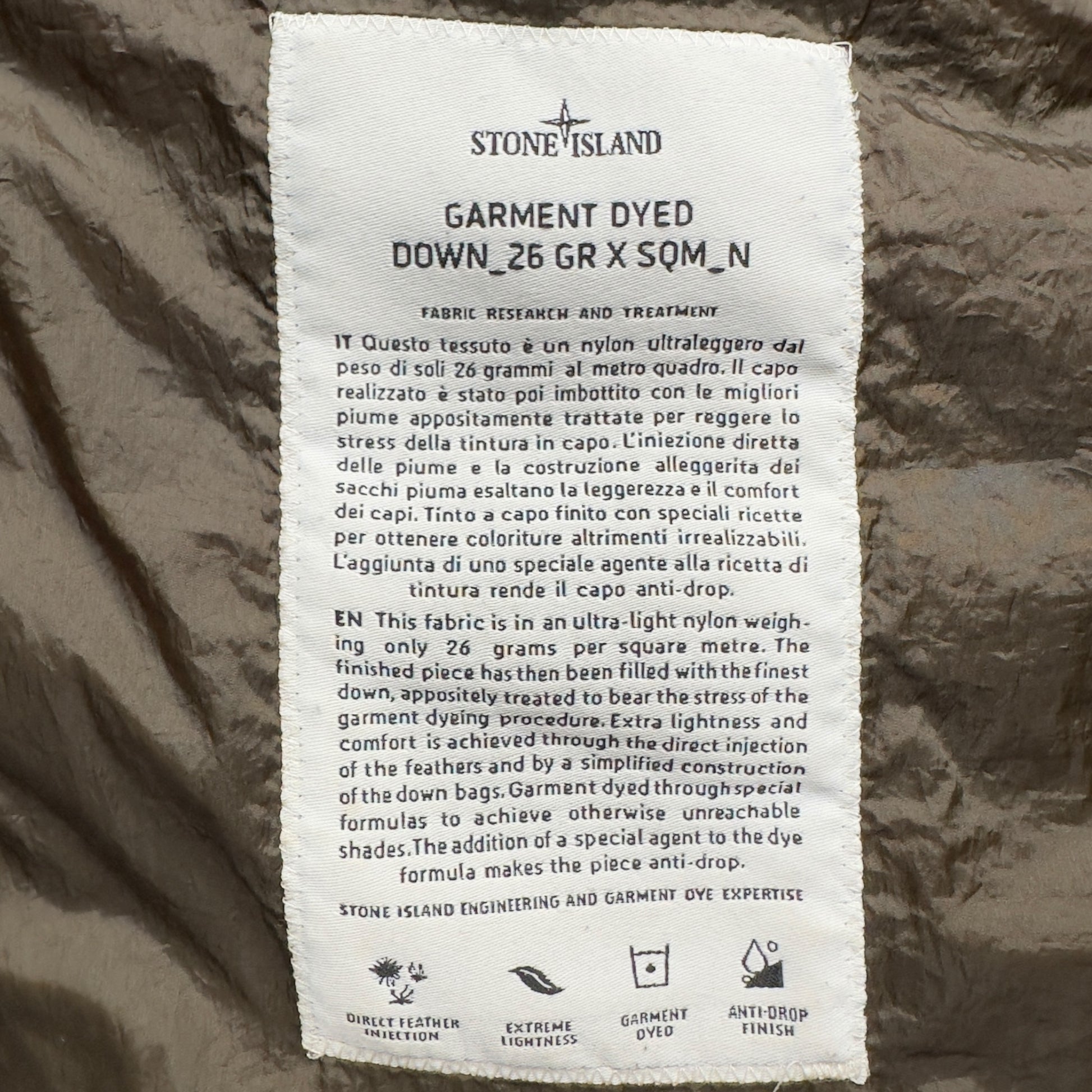 - Premium down insulation, specially treated to withstand the garment dyeing process