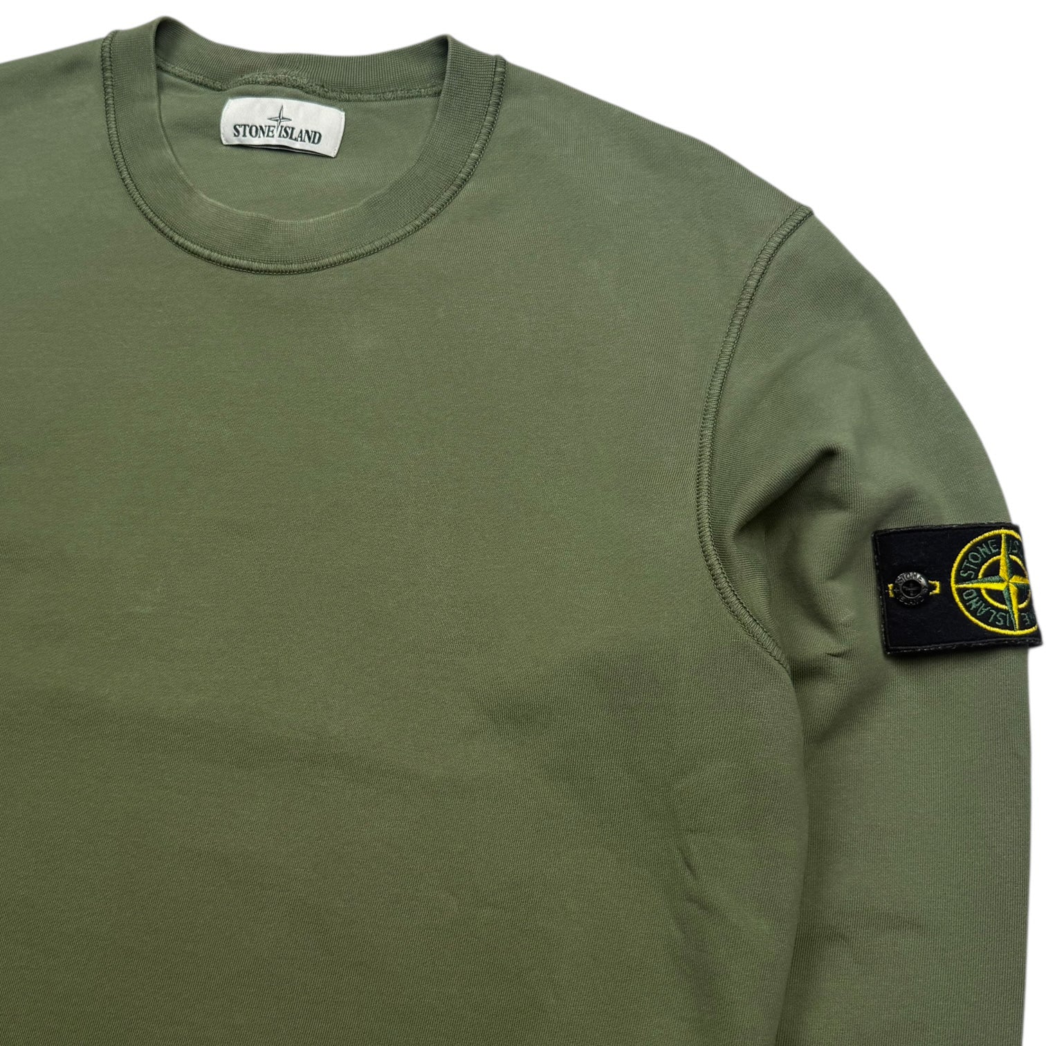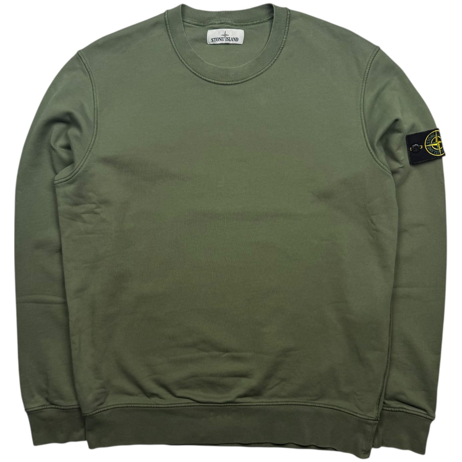 Stone Island crewneck sweatshirt garment-dyed in sage green. Crafted from soft cotton fleece. In great used condition.