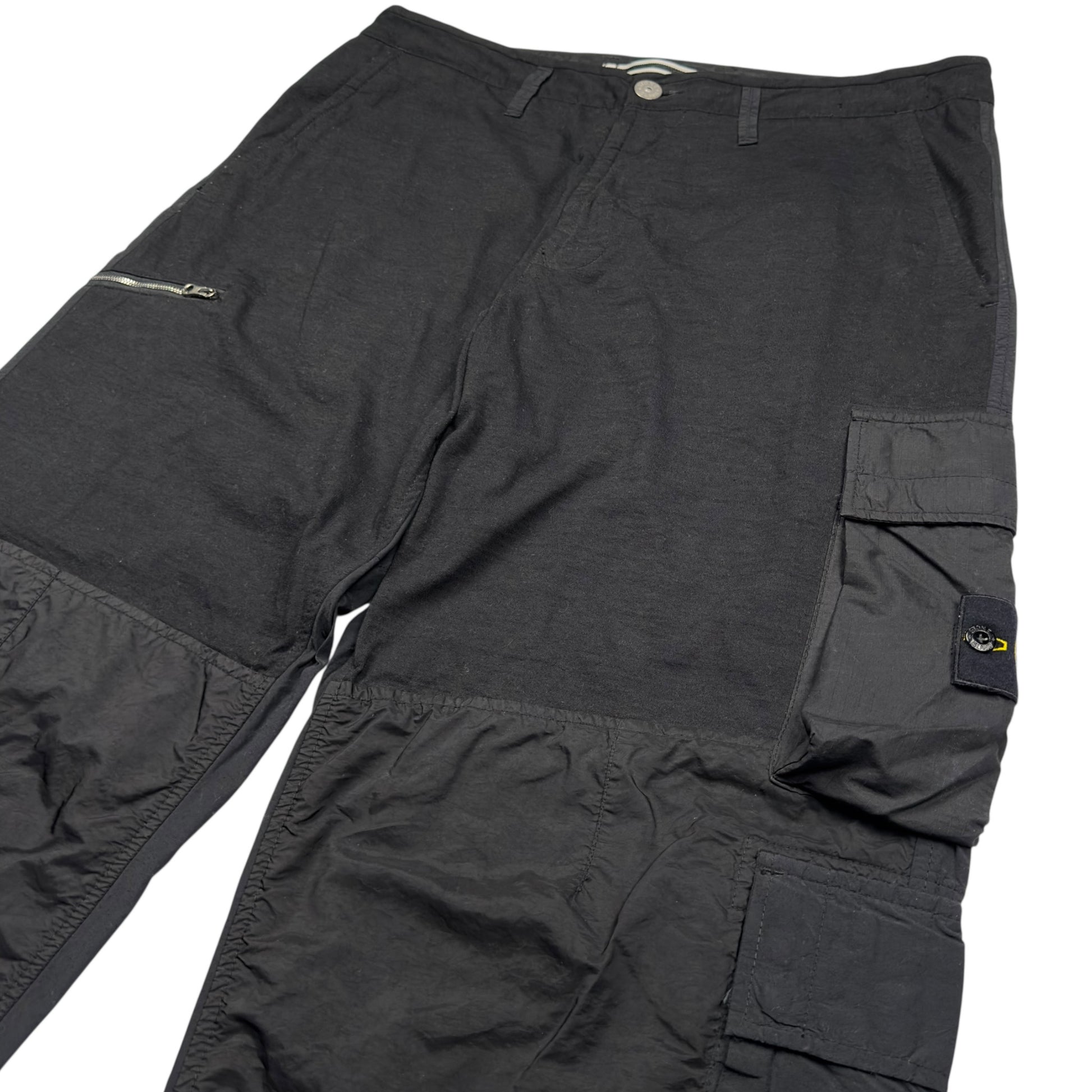 S/S 23 Stone Island Mixed Material Loose Fit Cargo Trousers - Black