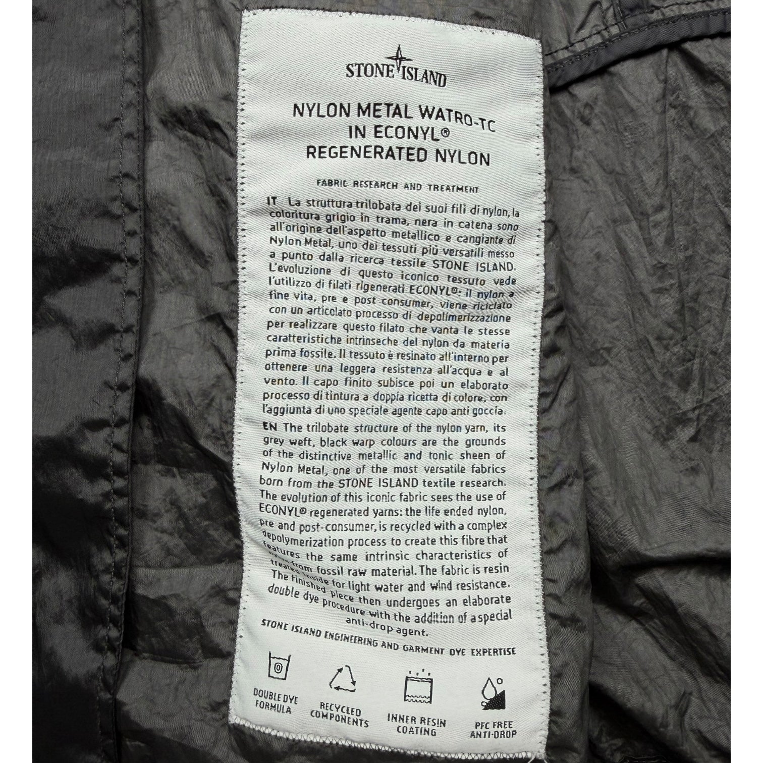 S/S 23 Stone Island Nylon Metal Watro ECONYL Jacket - Charcoal